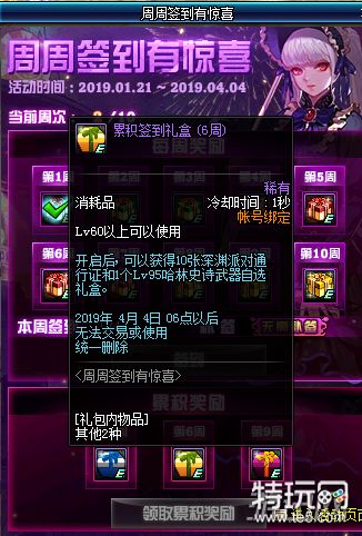 首先呢就是周签到,这个是福利最多的,但是周期也最长。周签可以提供一把95的哈林史诗武器,不是苍穹幕落哦~是95普通史诗。同时还附送哈林之武自选宝珠,那么武器的问题就解决了。