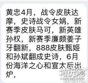 根据知名博主樊篱疏的爆料,我们可以看到,新皮肤里分别有黄忠、达摩、女娲和马可波罗几人,并且在S15赛季还会出新英雄孙权,同时肯定会有一款伴生皮肤。后续的话,廉颇、姜子牙、甄洛和孙膑也可能会推出全新的史诗级皮肤!