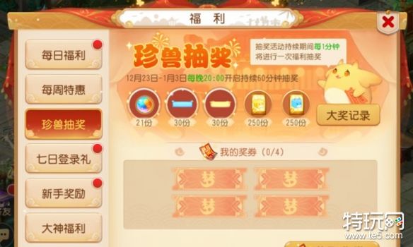 除了以上三大活动之外,从即日起至1月3日,玩家还能通过参与特定任务获取奖券,以参与每晚20:00开启的抽奖,赢得包括玄黄无极石、咕噜冒泡框、吉里冒泡框、方吉里变身卡、方咕噜变身卡在内的好礼!值得注意的是:每天的任务和奖券都将在每日0点刷新,所以玩家切记抓紧时间完成任务,以赢取对应的奖励哦!