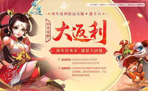 周年服“道十六”不止共战新服一个惊喜,还有来自官方的超级返利活动:历史累计充值返利活动的加持,帮助道友们为征战新服增添底气。活动期间将按照历史充值金额【玩家账号截止至2022年03月04日23:59在问道所有区组(包括道十六区组)的充值兑换额】的约30%的比例计算返还的上限,最高上限为45000元。只需在3月5日-4月12日期间在道十六进行充值即可获得实际返利,点击活动页面查询返利即可了解自己获得最高返利的充值额度。返利将通过天天领工资,达成个人成就领奖励和充值得福袋三个途径发放给新服道友,记得上线领取哦~