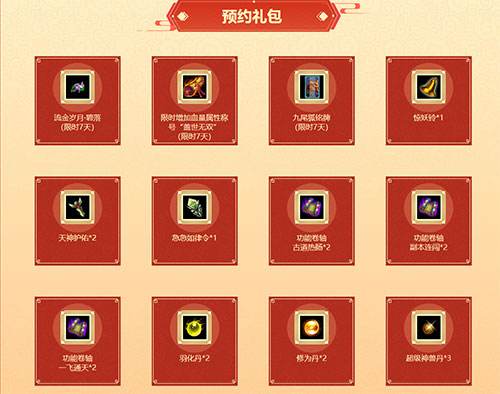 说了这么多,道友们是不是已经心动了呢?不要急,还有更多好礼等待你的领取。3月2日12:00-2022年3月11日23:59,小伙伴们登陆官网新服预约礼包页面,即可领取到专属的预约礼包。其中包括限时流金岁月时装、限时增加血量属性称号“盖世无双”、功能卷轴古道热肠、功能卷轴副本连闯以及羽化丹、超级神兽丹等丰厚的道具奖励,个个都是征战新服特别是度过前期非常实用的道具,一定不要错过。