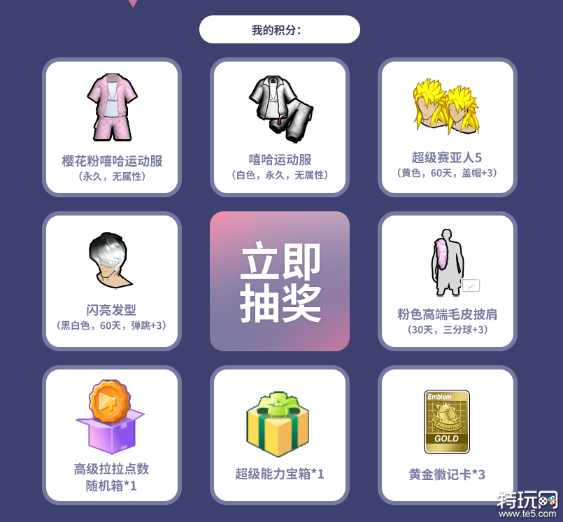 4、满级后溢出的积分可以用于后续抽奖和兑换奖励,兑换奖励无法重复购买相同道具,每个物品限购一次。