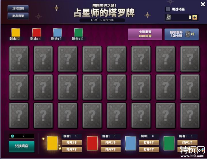 未翻完24张卡片时可以消耗1000点券进行重置。翻完24张卡牌后可以免费进行重置。
