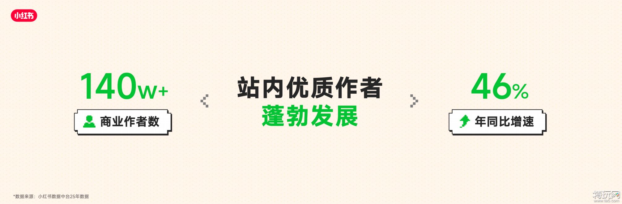 • 小红书站内优质创作者蓬勃发展,商业作者数量以46%的增速持续增长,多个垂类优质博主全面开花,渗透生活决策和兴趣爱好多个场景。