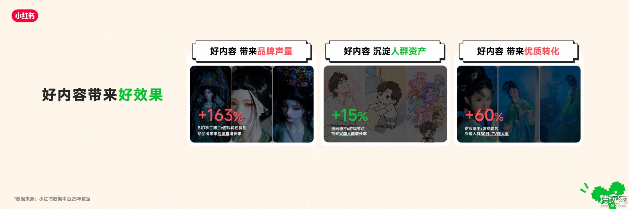 • 在小红书实现高质量用户增长的游戏品牌,都跳脱出短期数据桎梏,以细分人群洞察锚定买点,打造好内容,收获长效增长与好口碑。