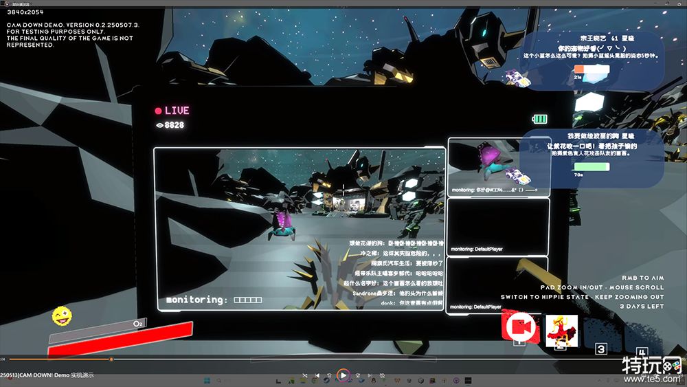 A:如果说《致命公司》像一套稳健的任务体系,《内容警告》更像是一次充满创意的爆点体验,那我们《CAM DOWN!》的核心,其实是构建了一套“直播反馈循环”:玩家行动→直播间呈现→观众互动→任务触发→再影响玩家。