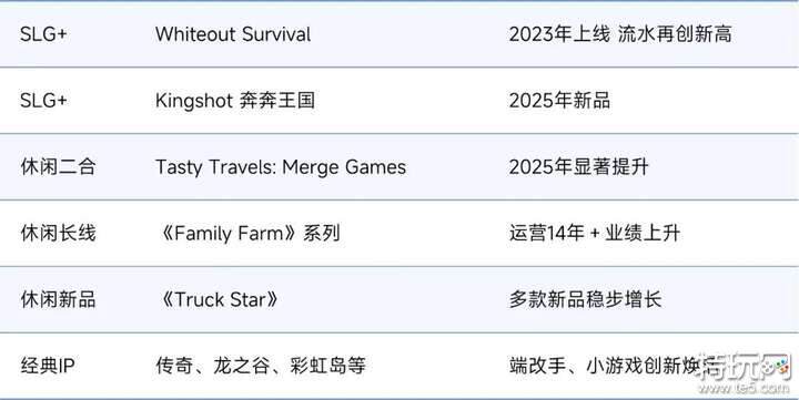 世纪华通2025年度财报显示,公司全年合并营业收入378.98亿元,同比增长约67.55%,连续12个季度收入实现同比增长。凭借研、发、运三位一体的综合能力优势,世纪华通在国内市场与出海赛道协同发力,全球移动游戏收入进一步增长,进入2025年全球移动游戏产品营收TOP100企业榜单前三。业绩的持续突破,主要得益于长青产品的稳定贡献,以及新品矩阵的不断扩容。海外市场方面,现象级爆款《Whiteout Survival》在上线三年后流水再创新高,显示出“SLG+”产品的长线运营潜力,也让Century Games积累了一套成熟的方法论。2025年,新品《Kingshot》延续轻度玩法破圈获客、重度内核长线变现的核心逻辑,并切入王国建造题材,上线后快速增长。SLG赛道之外,世纪华通持续发力休闲品类,《Family Farm》系列运营超过14年稳定预期,二合玩法产品《Tasty Travels:Merge Game》和新品《Truck Star》表现亮眼。国内市场方面,公司旗下相关主体同样表现稳健。点点互动持续深耕SLG品类,《无尽冬日》收入保持快速增长,新品《奔奔王国》成绩可观。盛趣游戏则围绕经典IP推行"唤醒"策略,《传奇新百区—盟重神兵》《龙之谷世界》等IP手游新品相继落地。展望未来,随着世纪华通双赛道多品类布局持续完善,在经典产品长线运营与数据导向的新品有序迭代之下,其全球移动游戏竞争力有望进一步夯实。