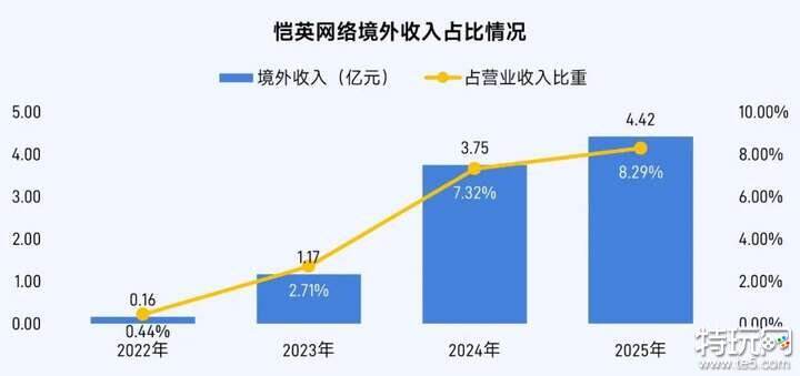 近年来,恺英网络加码出海业务,逐渐成为拉动业绩增长的新引擎。2025年,恺英网络多款产品在韩国、欧美、港澳台等市场表现亮眼,《怪物联萌》《MU Immortal》《열혈강호:귀환》(中国大陆名称:《全民江湖》)等游戏上线首日即登顶当地应用商店免费榜前列。业绩报告显示,恺英网络2025年度境外收入达4.42亿元,营收占比进一步上升至8.29%。此外,恺英网络孵化的创新企业极逸AI专注于游戏垂直领域大模型SOON,作为全球首个跑通商业模式的游戏行业专精模型,打造出了具备专业级交付能力的生产工具,有望进一步拓宽恺英网络在全球移动游戏产业链中的价值边界。