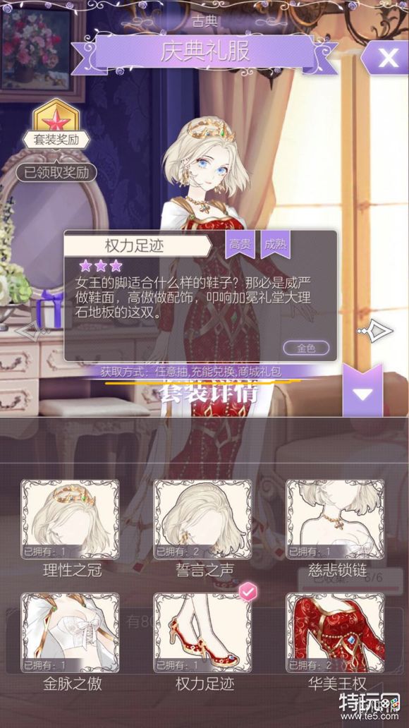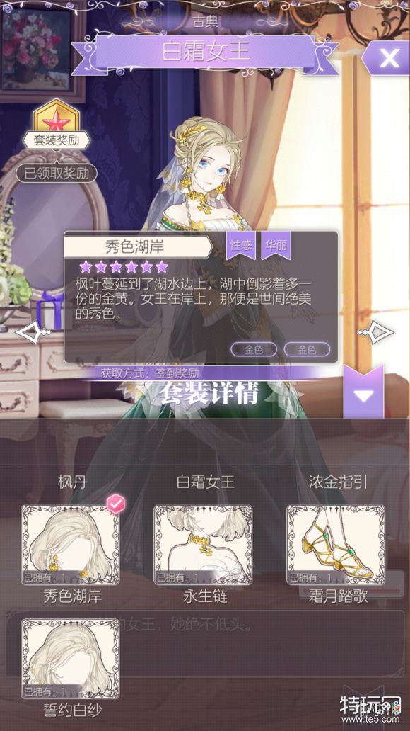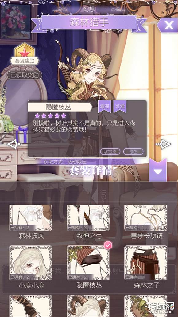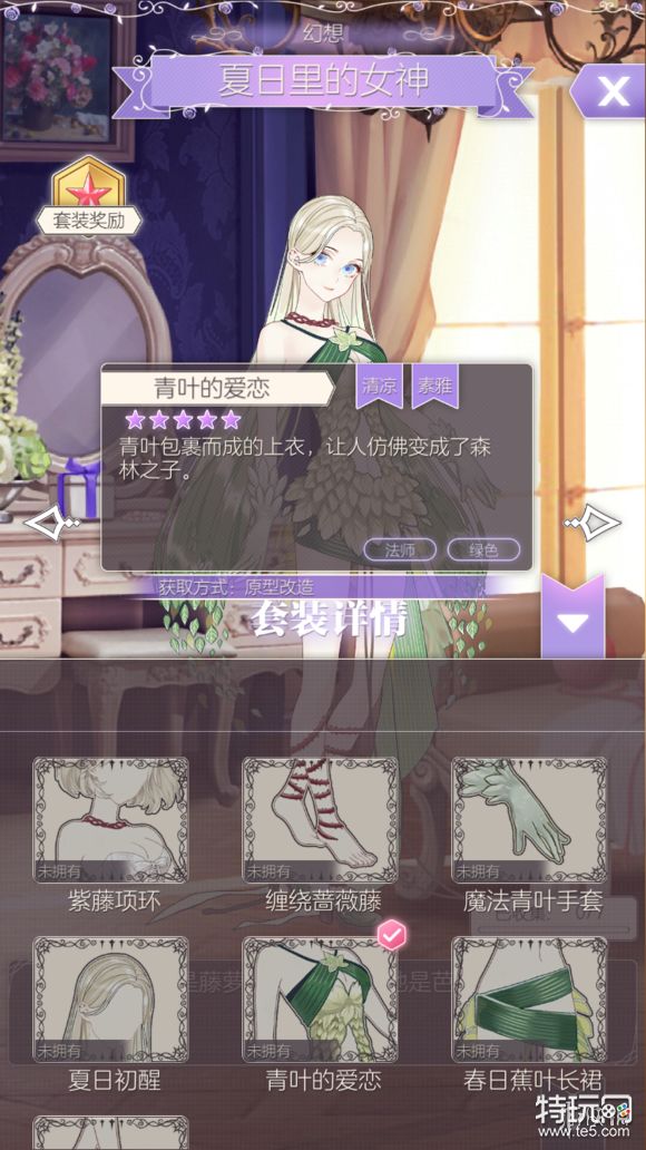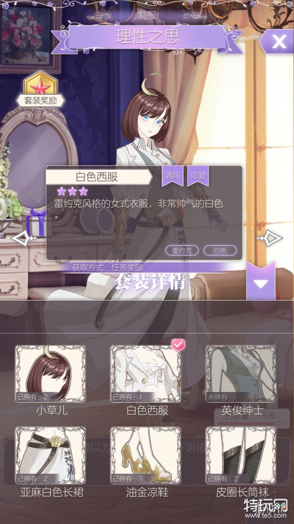 点击尖头可查看套装内容以及服饰的属性,获取方法