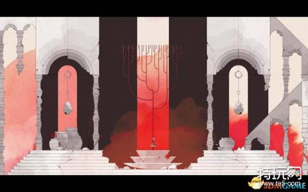往右边走,走到手的雕像那,触发动画,接下来整个画面会变红。