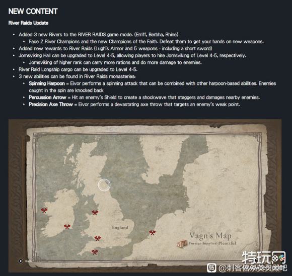 新的沿河劫掠两处在爱尔兰,一处在法兰西,会有新的小boss,一套装备和五把武器