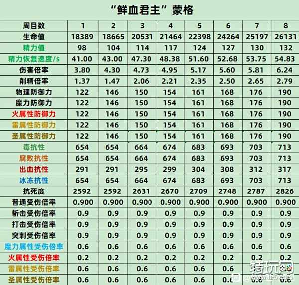 鲜血君主蒙格全数值抗性如下图
