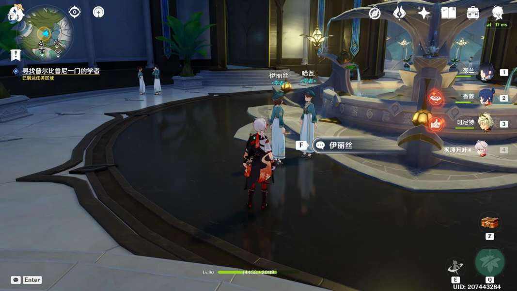 进入教令院水池旁,与伊丽丝/哈瓦对话
