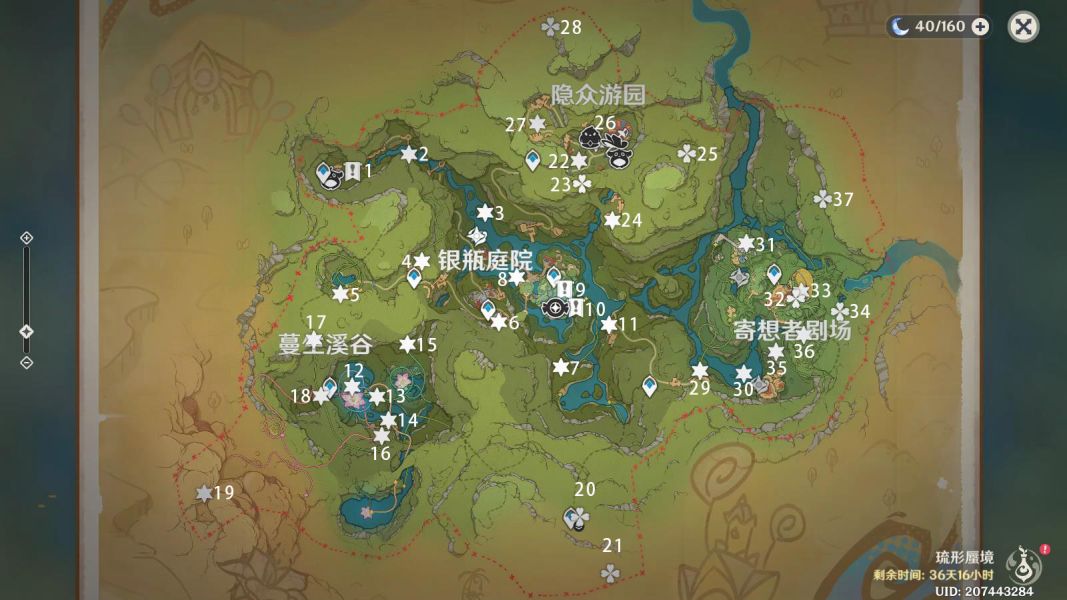 原神3.8琉形蜃境礼券秘盒全收集攻略,37个礼券秘盒地图指引,分成8个区域详细介绍位置。礼券秘盒分布在银瓶庭院-西北、银瓶庭院-南、蔓生溪谷-南、蔓生溪谷-东南、隐众游园-南、隐众游园-西南、寄想者剧场-北、西南、寄想者剧场-南、最北。