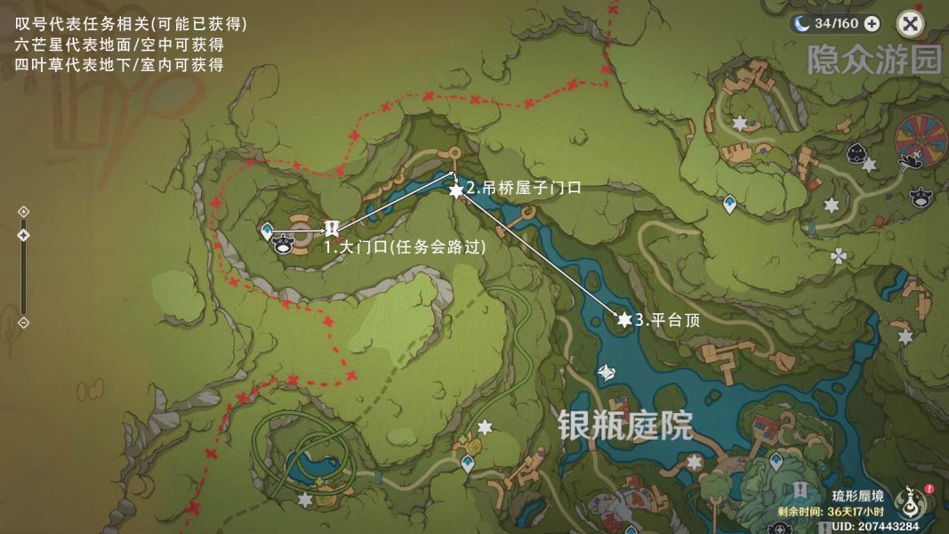 传送银瓶庭院南方向锚点,往地图的南方向头顶看