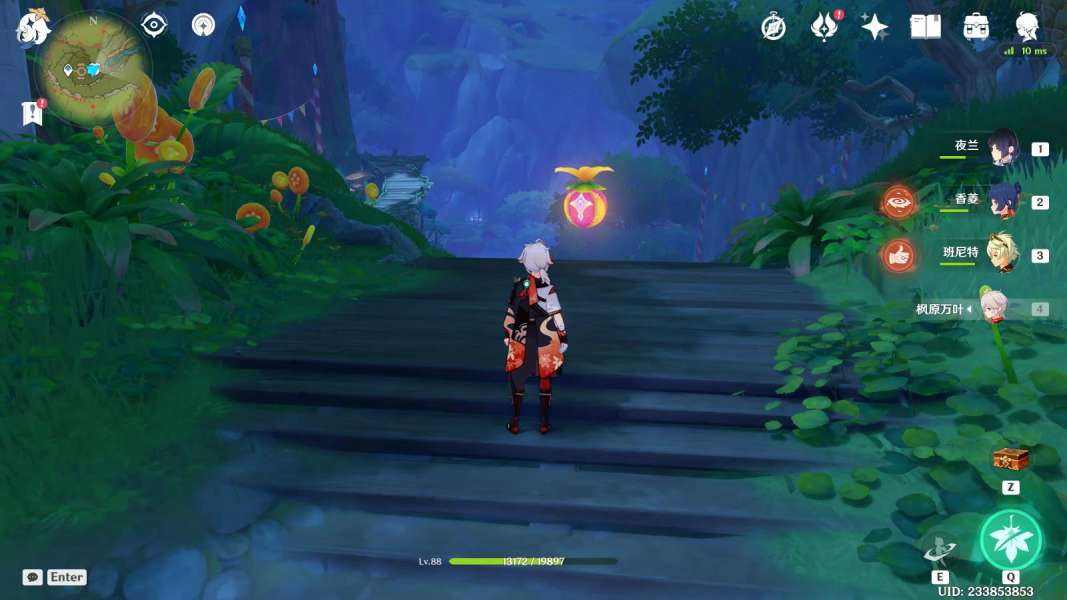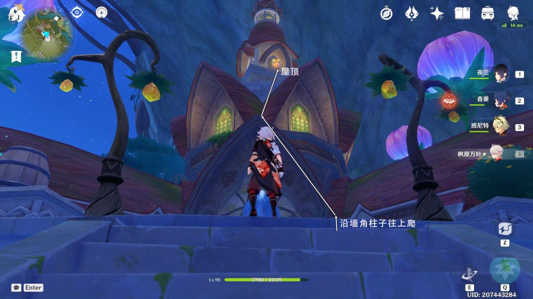 传送银瓶庭院西南方向锚点,往地图的北方向头顶看