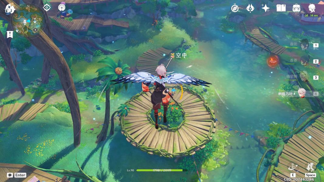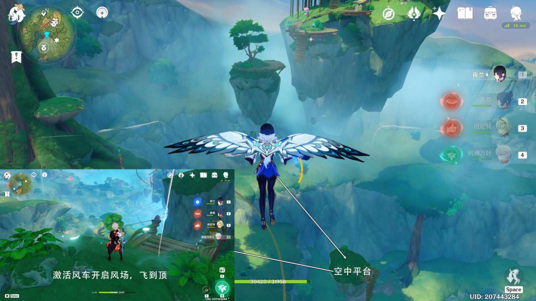 ▶风元素激活风车开启风场,飞到顶,获得礼券秘盒35;