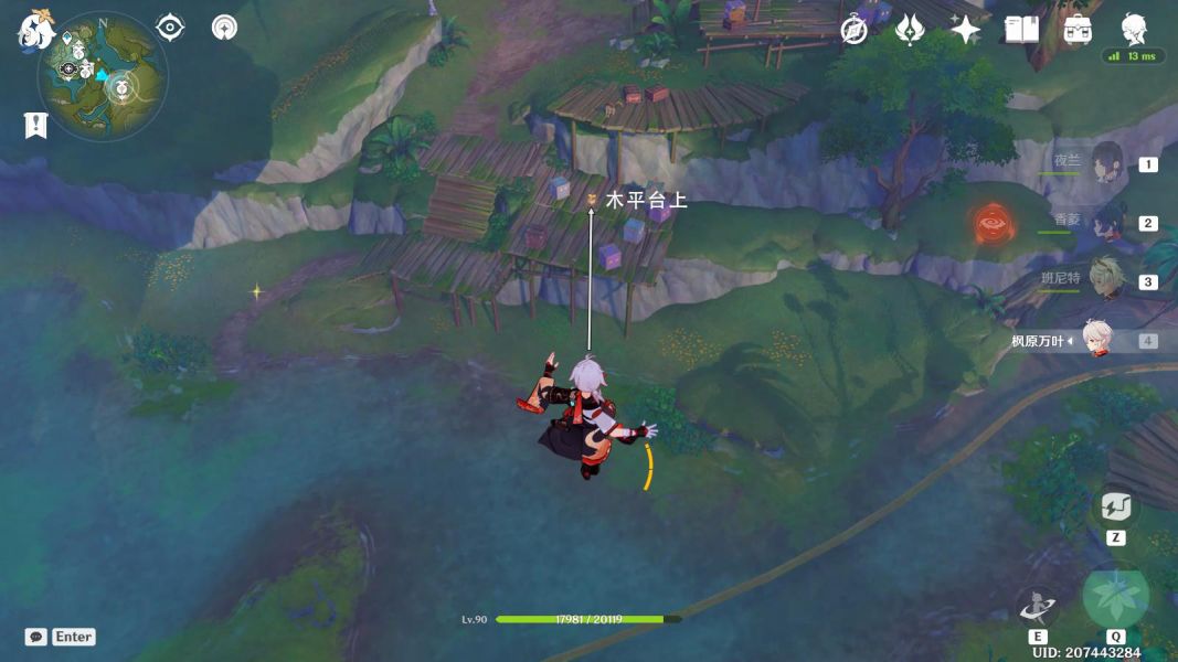 ▶往地图的北方向飞,前往山顶木平台,获得礼券秘盒15;
