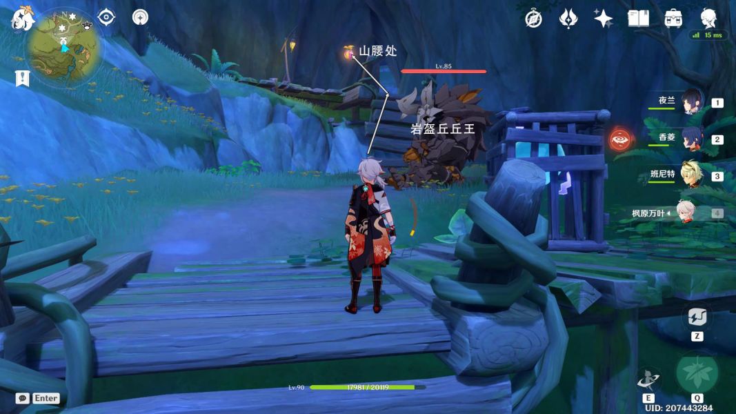▶前往山腰处(岩盔丘丘王),获得礼券秘盒23;