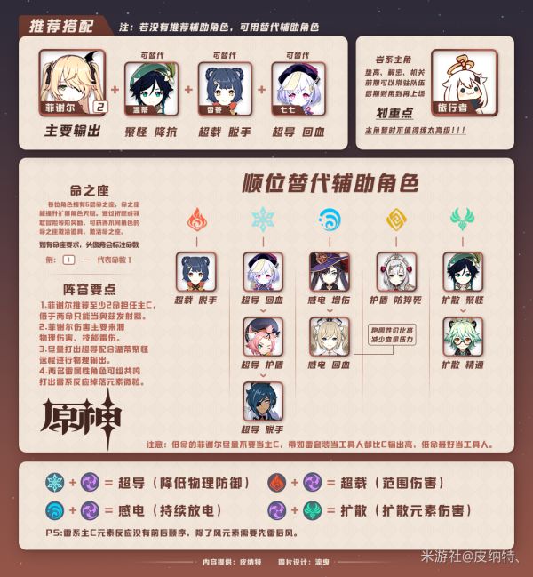 原神菲谢尔主C阵容搭配相信不少玩家想知道,菲谢尔低命其实不适合作为主力,如果有高命菲谢尔可以考虑作为主C,下面我们就来一起看看原神菲谢尔主C队伍配置。