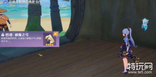 玩家需要来到踏鞴砂北部的岛屿,接下来找到阿敬并与之交谈,得知玩家要给他三个海螺可以获得一个开启宝箱的机会,海螺则是调查后面海滩上的是闪光点,有一定的几率可以获得,这种闪光点随处可见,收集三个还是非常快的。而破魔之弓图纸就是从这个普通的宝箱中概率出现的,如果玩家运气好的话第一天就可以得到。