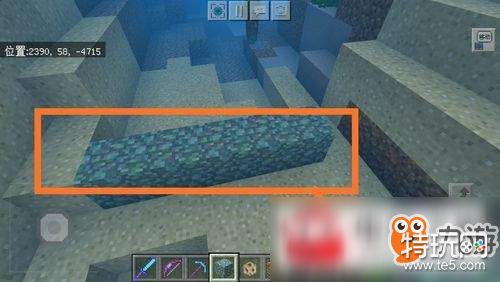 找到海之后我们开始潜入海底,首先拿出海晶石,摆出一横,五格长度即可,如下图所示。
