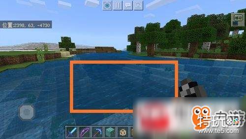 准备好材料之后,我们开始寻找地点,一般潮涌核心只能在海水里和水里才能发挥属性作用。所以我们需要找到海,海的面积最好要大一些,如下图所示。