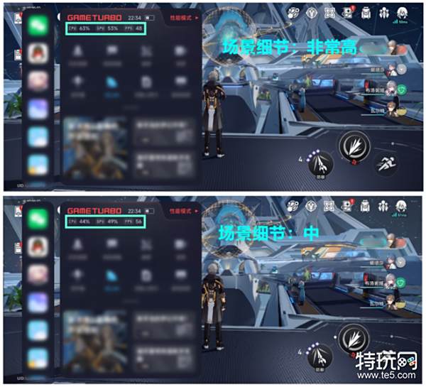 在具体设置方面建议安卓用户可以直接调节至『中』,在手机上非常高&高分辨率选项的实际分辨率都是1680*756,而调节至中后实际分辨率为1440*648。而这项画面设置的调节可以节省10%到13%的GPU性能。