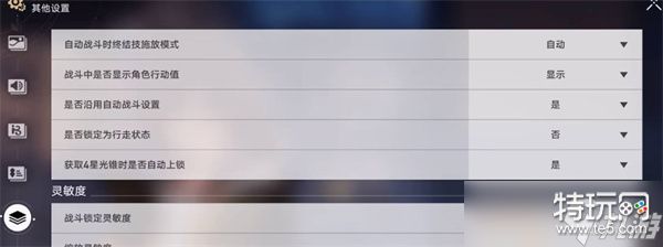 在左侧的菜单栏中点击最后一个,找到延续自动战斗的功能,选择是就好