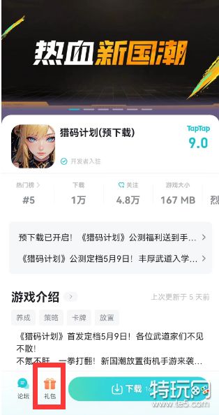 1、首先我们需要进入taptap应用软件,然后搜索【猎码计划】,进入游戏详情页。