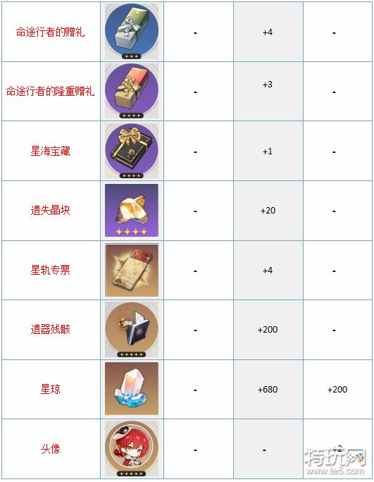 4个限定票,680石头,一个自选四星光锥(武器),大量材料