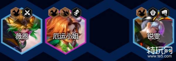 主坦锐雯能否三星更决定着阵容上限,其技能增加大幅度护盾,且早幻灵加持下血量比较高,坦度较为优质。而3星后的锐雯输出强度比较高,能大幅度增加过墙能力。