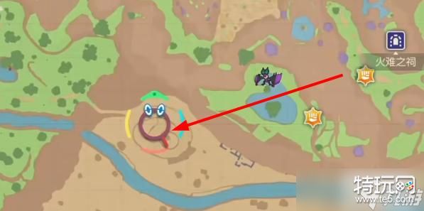 2、首先我们需要前往火难之祠西南方向的上图位置,在这里我们可以看到三个蓝色铁架。