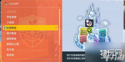 4、然后在大厅中我们点击前方的机器,选择生物教室并前往;