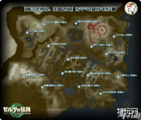 《塞尔达传说王国之泪》全鸟望台分布图 15个鸟望台位置