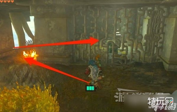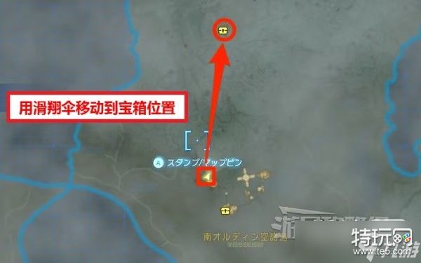 从奥尔汀峡谷的鸟望台往上空飞,用滑翔伞移动到目标位置。注意合理使用料理回复精力。