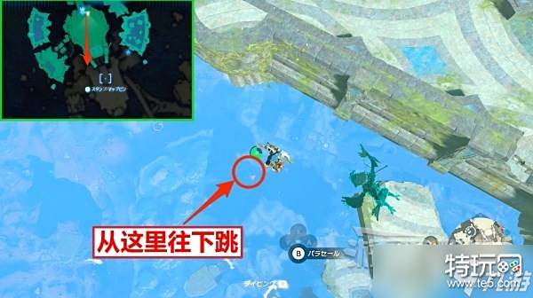 传送到水之神殿的神庙,往南一直走魔像的位置往下跳。