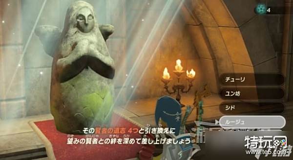 在女神像处可以用4个贤者的遗志来强化任一贤者的能力,大家可以根据喜好来选择。