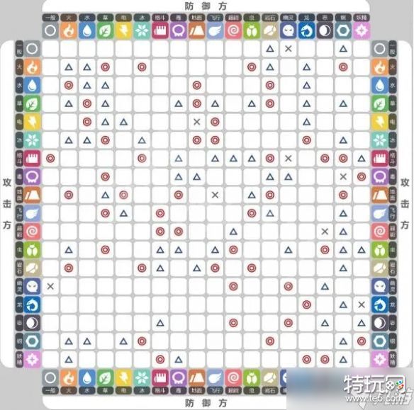 在原始属性、太晶属性、招式属性都相同 招式威力提升○=2倍 △=0.5倍 x=无效。