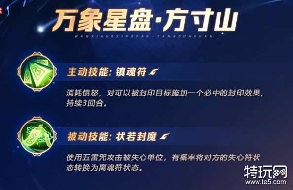不同门派有不同的星盘技能,分为主动技能(镶嵌3个方印+1个圆印),被动技能(3个圆印+1个方印).二者至多选其一