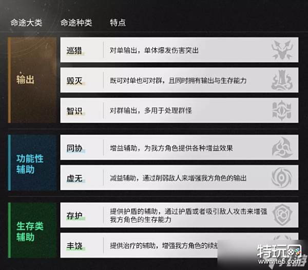 这里根据命途的特点将所有角色大致分为了三大类,分别是输出类角色、功能性辅助角色和生存类辅助角色。
