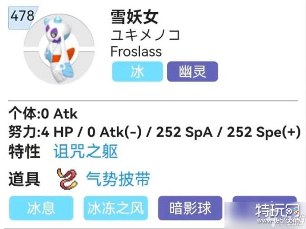 功能分析:雪妖女在队伍中主要是作为高速冰息工具人,同时也可以通过冻风控诉帮流氓鳄取得速度优势,在知道自己活不下去的时候可以同命换掉对手一只流氓鳄不好处理的宝可梦,甚至可以先手同命,流氓鳄主动地震击杀雪妖女触发同命,但如果脸黑可能触发雪妖女的诅咒之躯,因此慎用这一技巧。