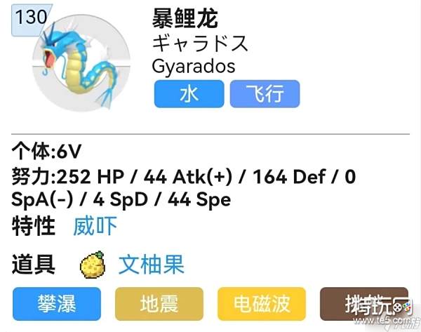 功能分析:暴鲤龙在队伍中可以通过轮转来限制对方的物攻手,同时携带了挑衅作为队伍面对盾菇的一个对策,电磁波可以在没有顺风时控诉来为对于争取出手权,除进行轮转和辅助外也可以打出不俗的伤害。太晶地面可以免疫暴鲤龙最为致命的电系伤害,同时进一步提高地震的威力。