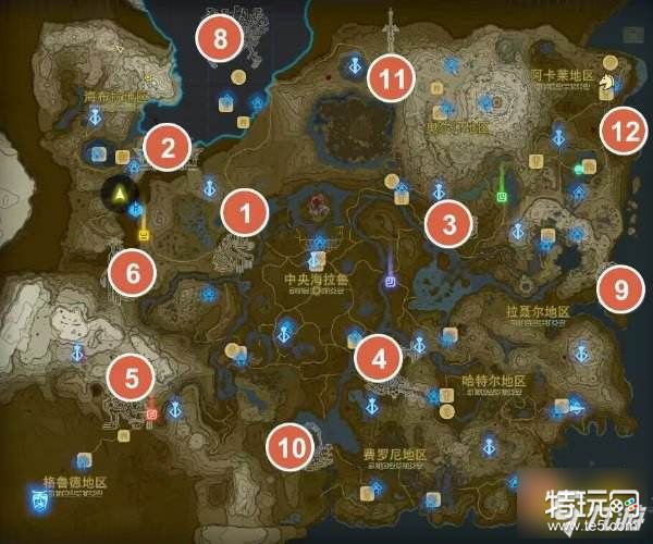 塞尔达传说王国之泪游戏中共有12个龙之泪,玩家找到后就可以触发冒险回忆龙之泪,下面是全龙之泪触发位置地图攻略。