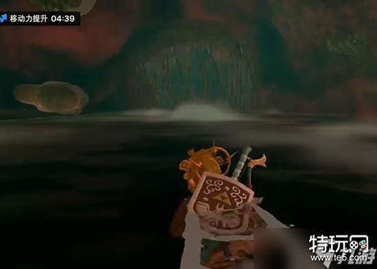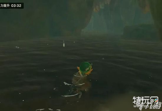 1、来到图示的位置向前走跳入洞窟中。