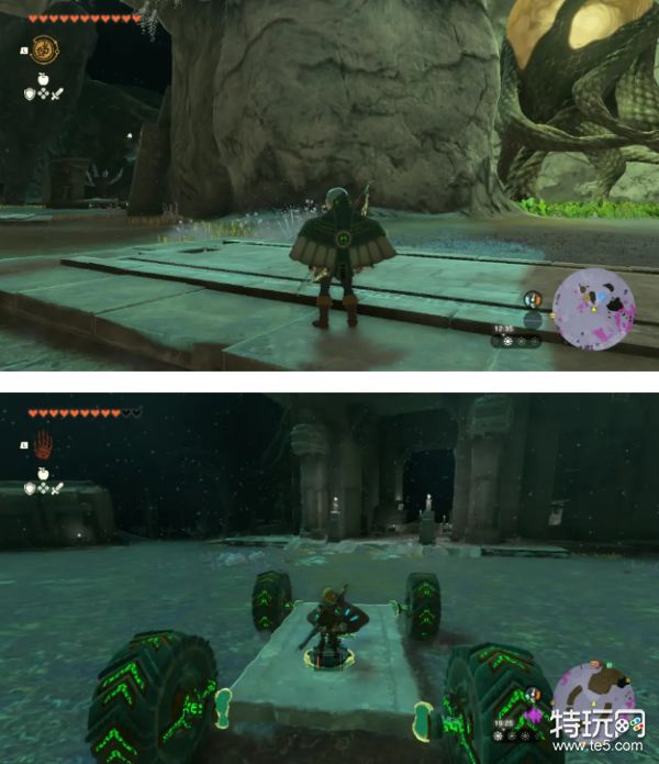 之后在地下会有两位调查员手把手教你使用蓝图功能,拼装成功后会碰到在荒野之息的老朋友——可盖大人,触发与可盖的Boss战。