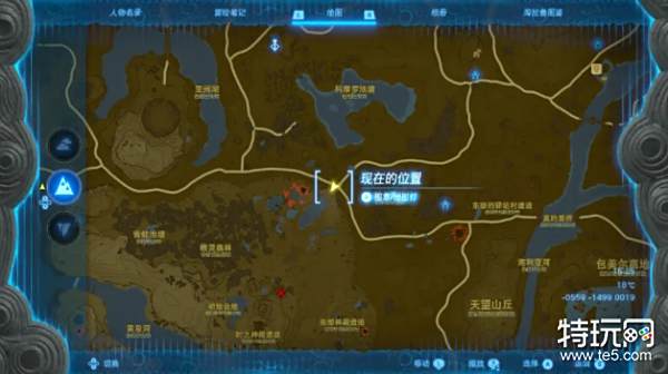 跟随女神像的指引,我们开始寻找初始台地的城门,打开地图观察,注意看初始台地周围的道路,城门通常会联通道路,因此我们可以寻找在初始台地周围的丁字路口,共有两处,石像还提到了水底,因此我们将目的地锁定至时之森林西侧的丁字路口处。
