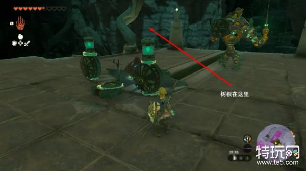 进入后不远处存在一树根,点亮树根增加能见度,之后来到旁边的武器库处拼装代步车,连接眼睛后沿着砖石路行走,最后来到中央大废矿的神殿处。