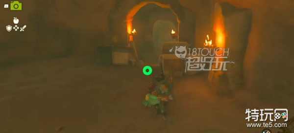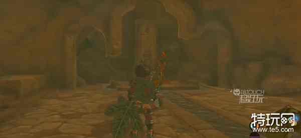 2、第二个石碑,NPC左侧的通道入口,进入后一直往左侧的门走,在下图通道的左侧墙壁上。需要先将沙子吹掉,然后将断裂的石碑拼接上去。