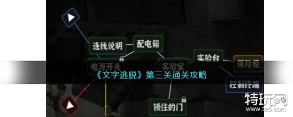 文字逃脱第三关怎么过?最近抖音又上线了一款新游戏文字逃脱,这个游戏就是纯纯的文字解密游戏,难度直线飙升,目前游戏虽然只更新了六个关卡,但是每一关难度都不小,文字逃脱第三关实验迷雾先点击配电箱,然后点击连线说明连接黄色、蓝色、红色得出来的线条方向就是电源开关的方向。下面是特玩小编给大家带来的抖音《文字逃脱》第三关通关攻略,感兴趣的小伙伴们一起来看看吧。
